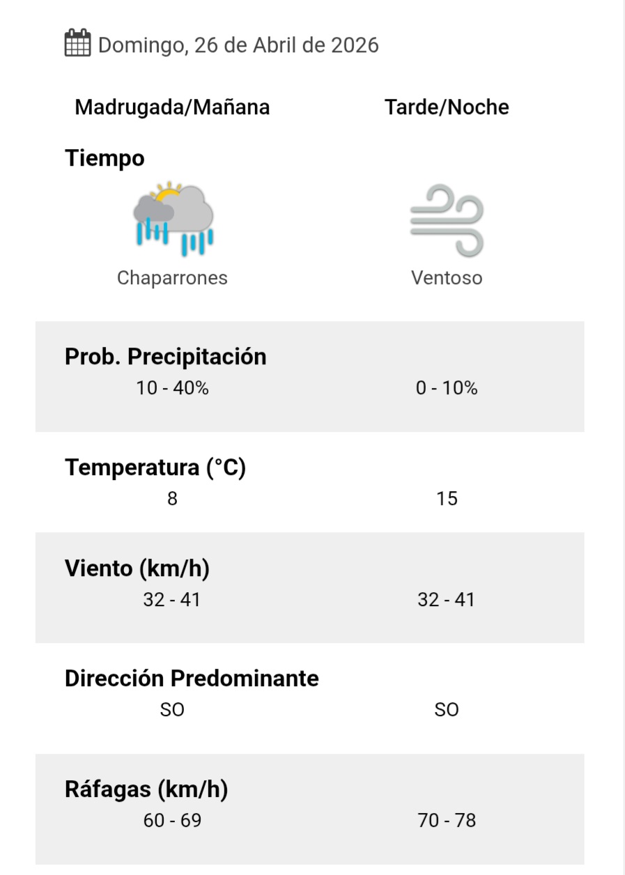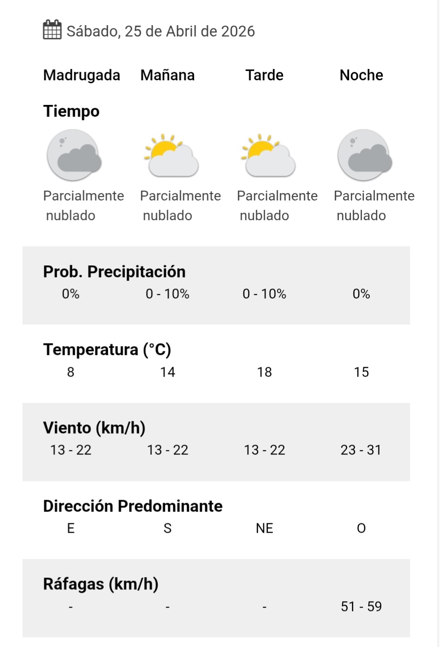 También se va a sentir el viento, sobre todo el domingo para el que se pronostican ráfagas que pueden alcanzar casi los 80 km/h. Incluso podrían caer chaparrones.