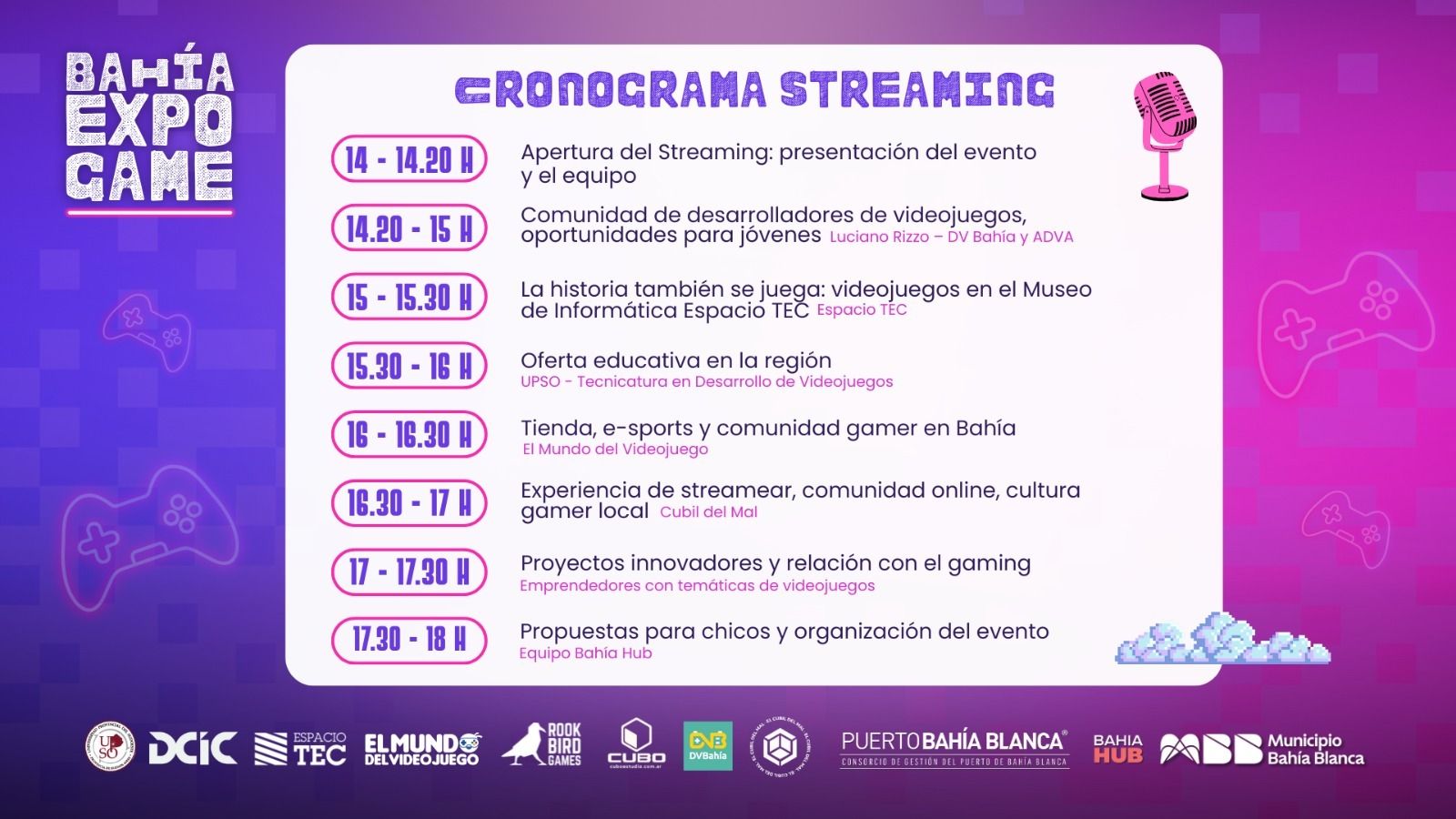 También salas de videojuegos y realidad virtual disponibles para jugar; y expo de videojuegos hechos en Bahía Hub; de desarrolladores y muestra de la UPSO; y de fabricación e impresión 3D.