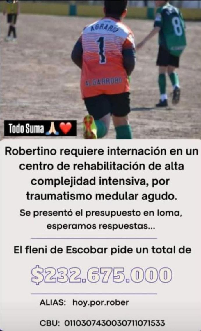 Un chico de 14 años con una lesión medular aguda está necesitando fondos para iniciar un tratamiento en Buenos Aires.