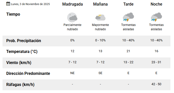 El viento va a estar calmo durante la mañana y el mediodía, y va a empezar a acelerar sobre la tarde, aunque tampoco nos ráfagas que pueden promediar los 30 km/h.