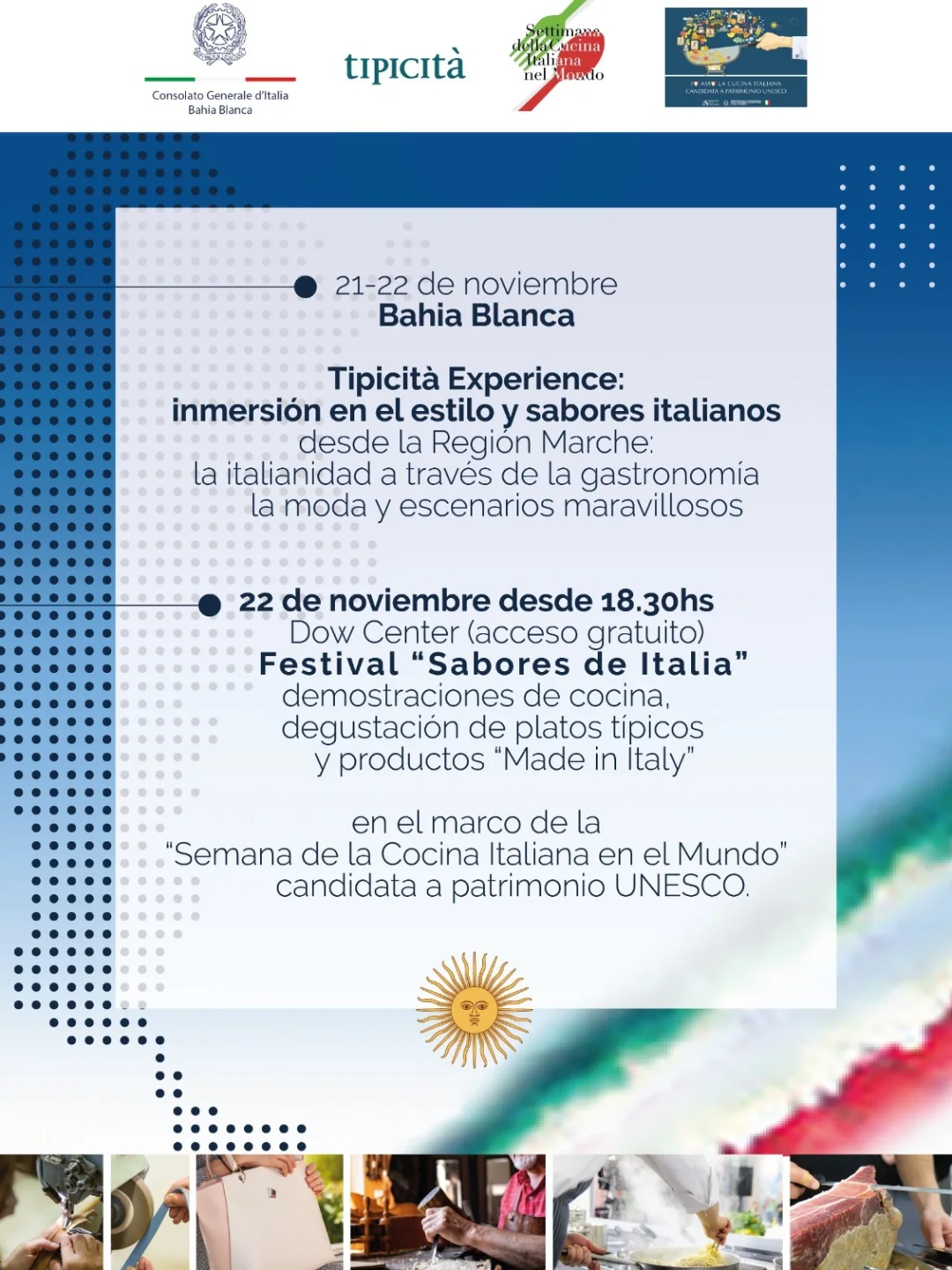 La jornada forma parte de una serie de actividades que se realizan en Bahía Blanca, Buenos Aires y Ushuaia entre el 18 y el 26 de noviembre, para apoyar la candidatura de la Cocina Italiana como Patrimonio de la Humanidad de la UNESCO.