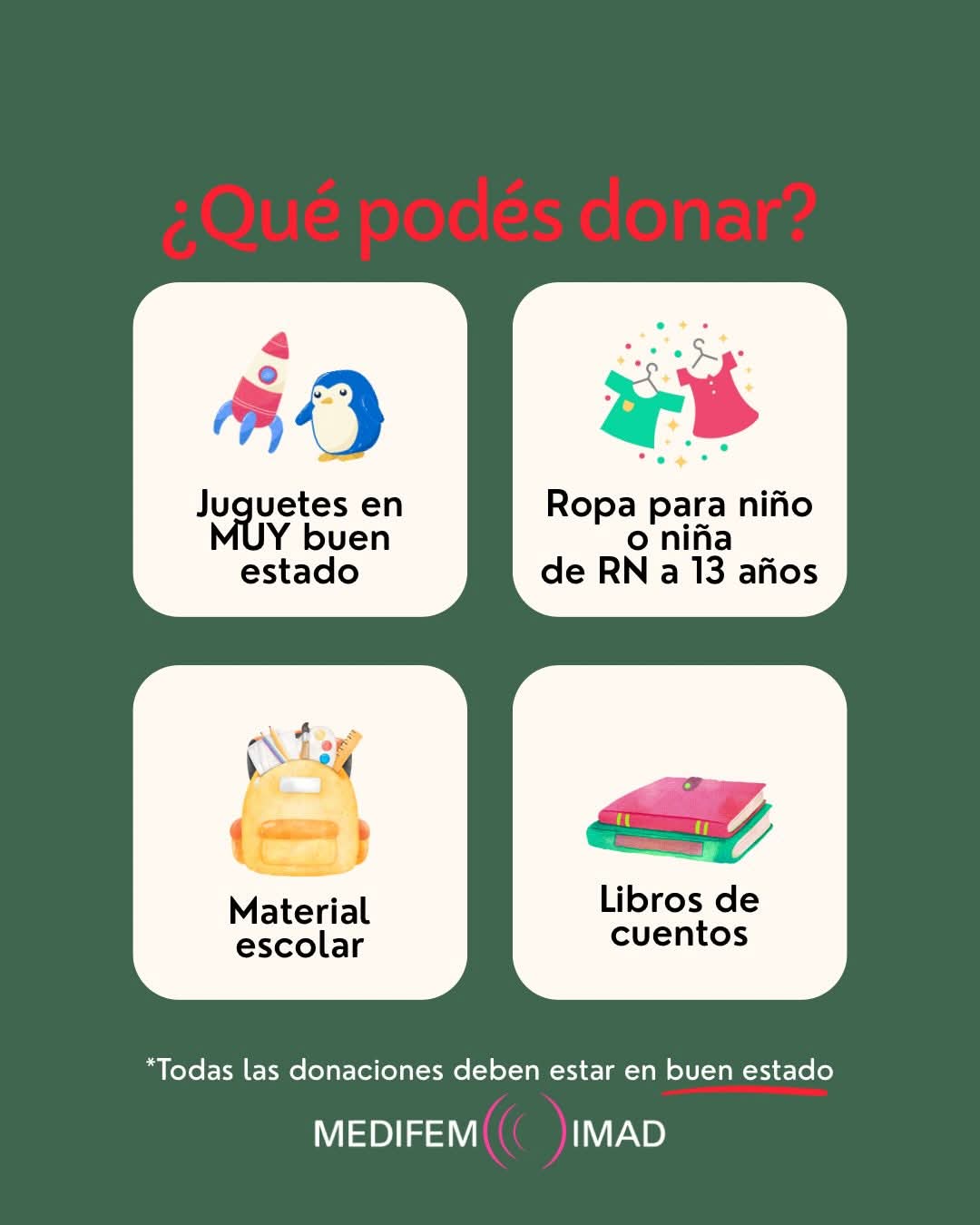 - Merendero “Luchemos Juntos”, Chaco 1875 y Alem 180 (reciben en Medifem).