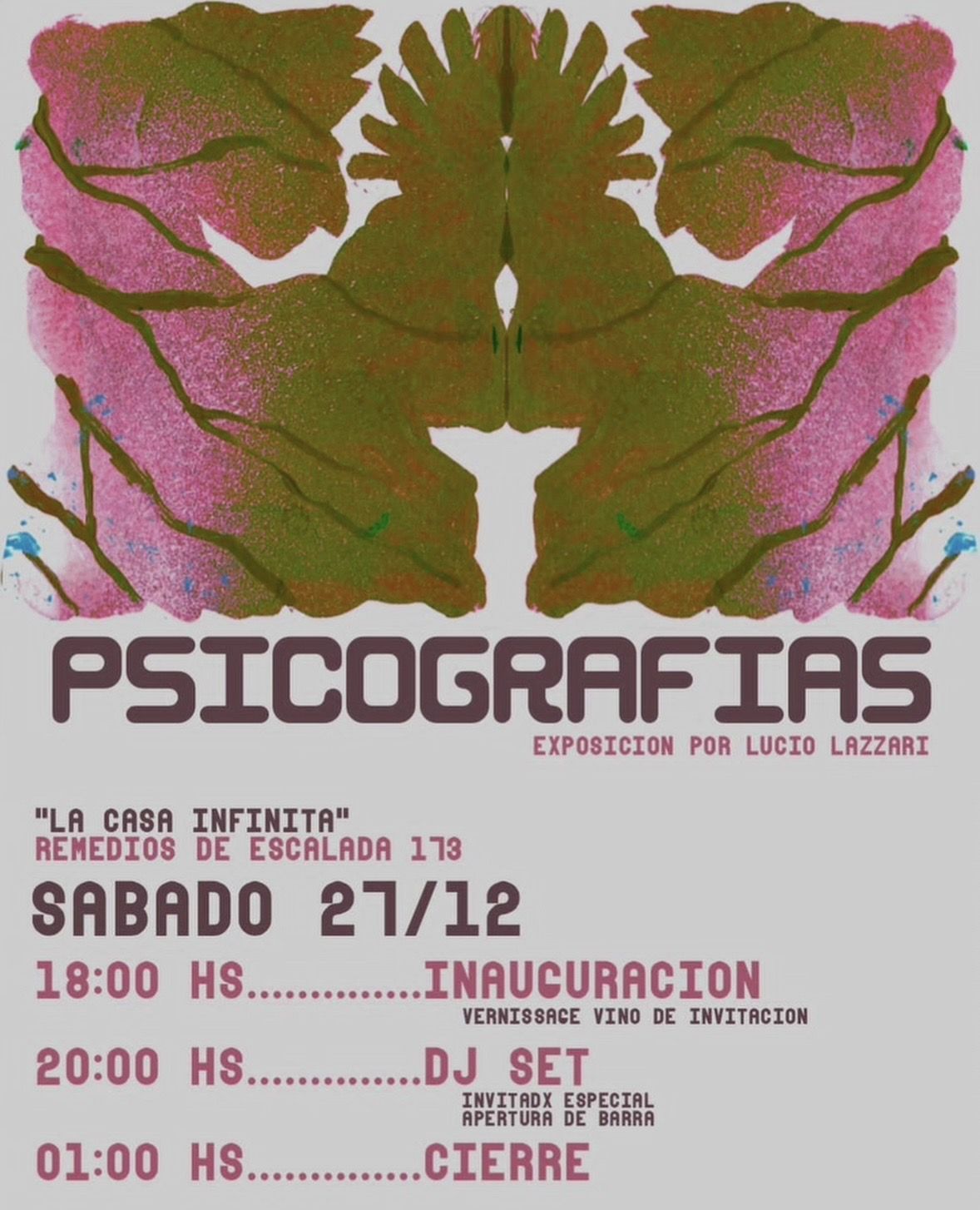 Sábado 27 – 21 hs – Centro Cultural la Panadería (Lamadrid 544)Recital a beneficio de la Asociación La Fuente agua para el corazón, organización que promueve la Educación Integral y el cuidado de la Madre Tierra con compromiso social, desde el 2007 en Bahía Blanca. Entradas: $5.000 anticipadas y $8.000 en puerta. Más info en: https://cclapanaderia.com/eventos/festival-desde-la-fuente/. - Psicografías