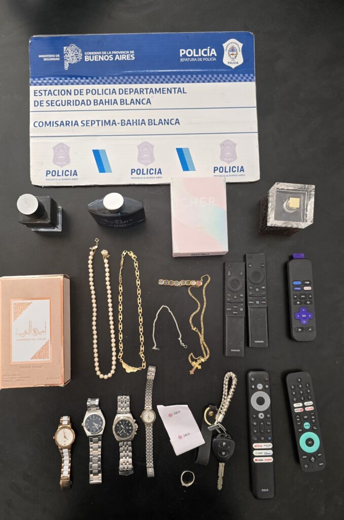 Durante la operación, los policías secuestraron tres televisores LED de distintos tamaños, un sommier con colchón, un lavarropas automático, una cocina, un aire acondicionado, todos nuevos y aún embalados, además de perfumes importados, joyas, relojes pulsera y una suma de 92.800 pesos en efectivo. Según se informó, varios de estos elementos habrían sido adquiridos con dinero robado en uno de los hechos investigados.