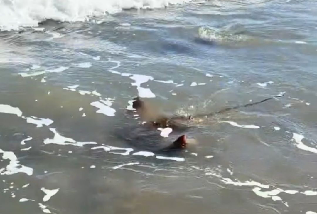 Además de lobos y elefantes marinos, alguna ballena metros adentro, y una aguaviva dispersa, ahora fue el turno de una raya.