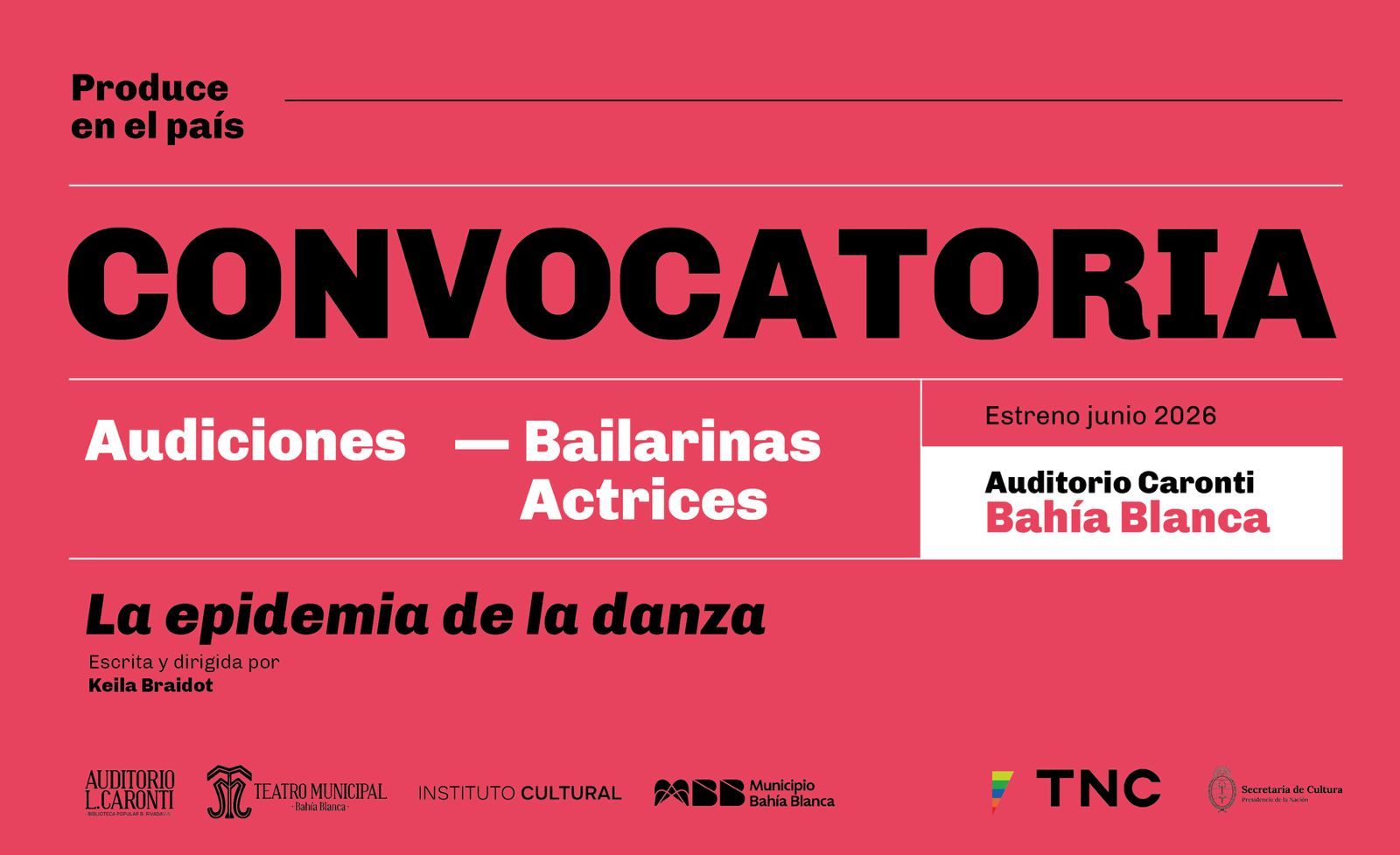 En el marco de la coproducción entre el Teatro Nacional Cervantes y el Instituto Cultural de la Municipalidad de Bahía Blanca, se abrió una convocatoria para conseguir cuatro bailarinas/actrices con fuerte presencia escénica y formación en danza contemporánea y/o clásica, que residan en Bahía Blanca y alrededores, a participar de las audiciones de “La epidemia de la danza”.