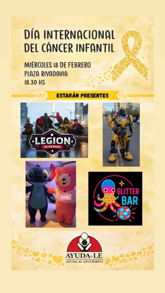 Hoy, desde las 18:30 horas habrá actividades para toda la familia en la Plaza Rivadavia, por el Día Internacional contra el Cáncer Infantil.