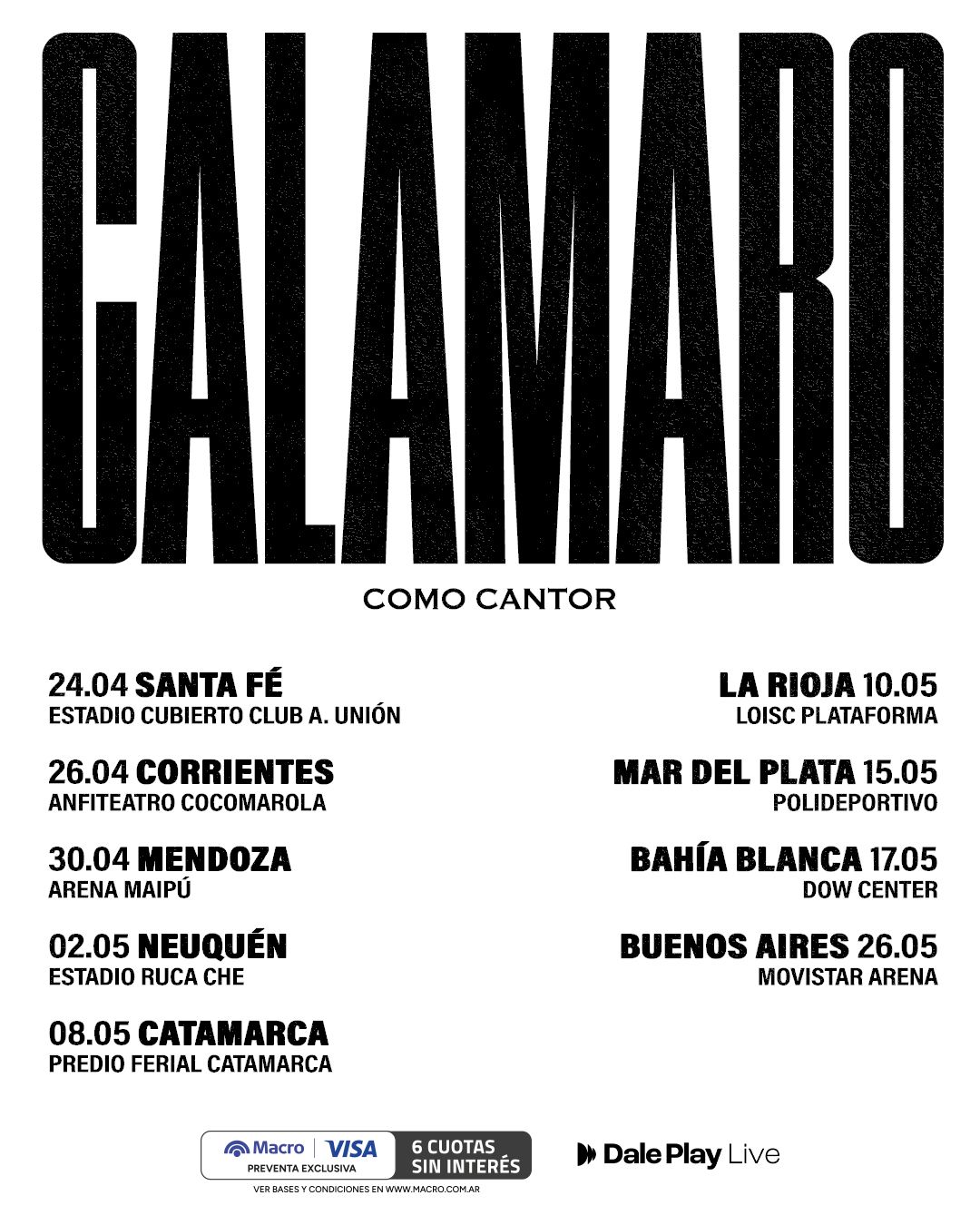 Esto va a ser en el marco de una gira nacional llamada “Como Cantor” en la que se va a estar presentando en Santa Fe, Corrientes, Mendoza, Neuquén, Catamarca, La Rioja, Mar del Plata y Capital Federal.