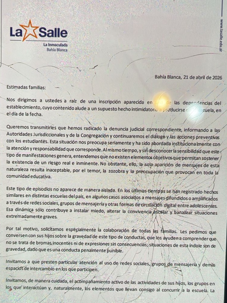 Ahorahace 53 minutosOtra amenaza de tiroteo y aparición de una bala en una escuela de Bahía