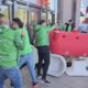 Con banderas, bengalas y tambores, quieren impedir que abra el centro comercial, argumentando que no corresponde.