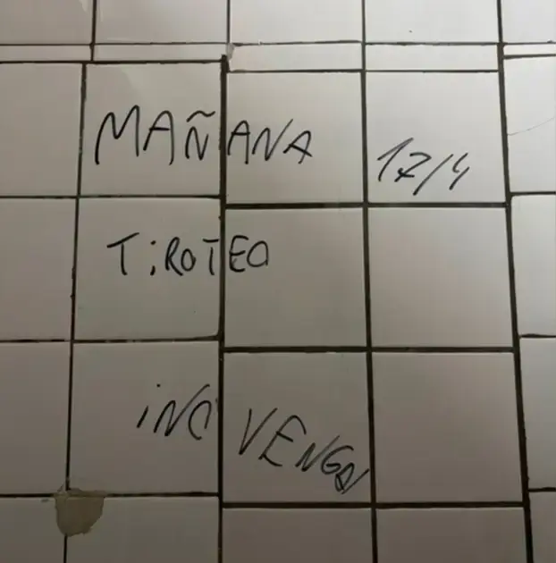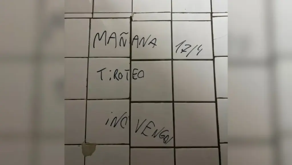 La institución educativa está en estado de alerta después de encontrar un aviso intimidatorio en el baño de varones del ciclo superior, en donde en una de las paredes se podía leer “Mañana 17/4 tiroteo, no vengan”, escrito con tinta.