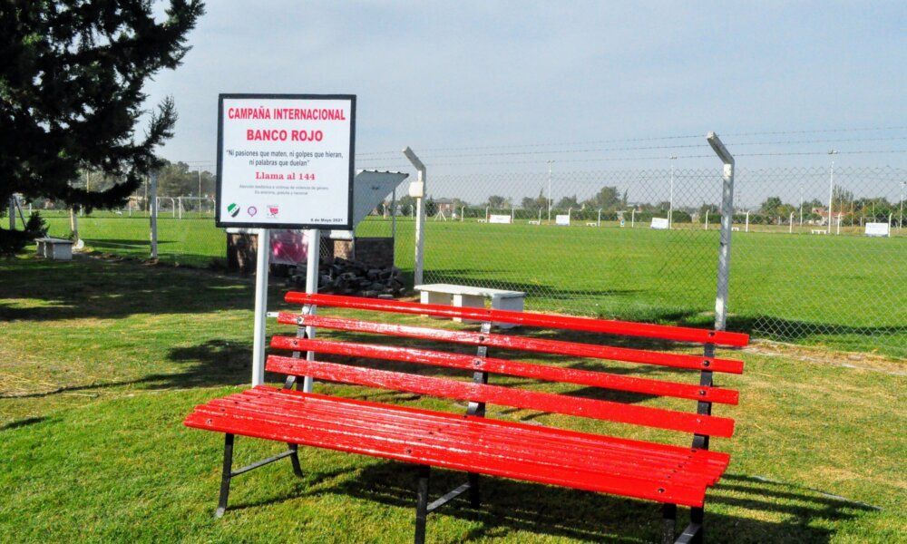 La señalización incluye un cartel con una frase de concientización y datos útiles como la línea telefónica 144, nacional, gratuita y anónima para la atención a...