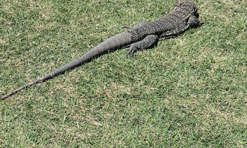 Este martes un lagarto sorprendió a quienes jugaban en el club de Golf Palihue. En cercanías del hoyo 1, mientras Carolina tomaba clases junto a una...