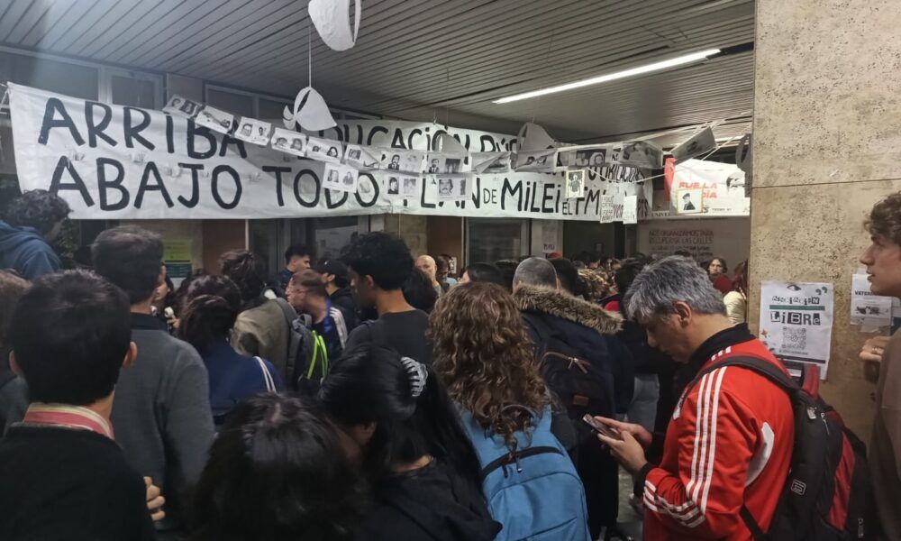 Estudiantes, docentes y no docentes se manifiestan contra el veto a la Ley de Financiamiento Universitario.