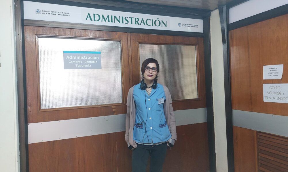 Es una persona no binarie y trabaja como secretarix administrativx en el Hospital Penna de Bahía.