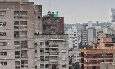 En la mañana del domingo cayeron algunos copos en la ciudad.