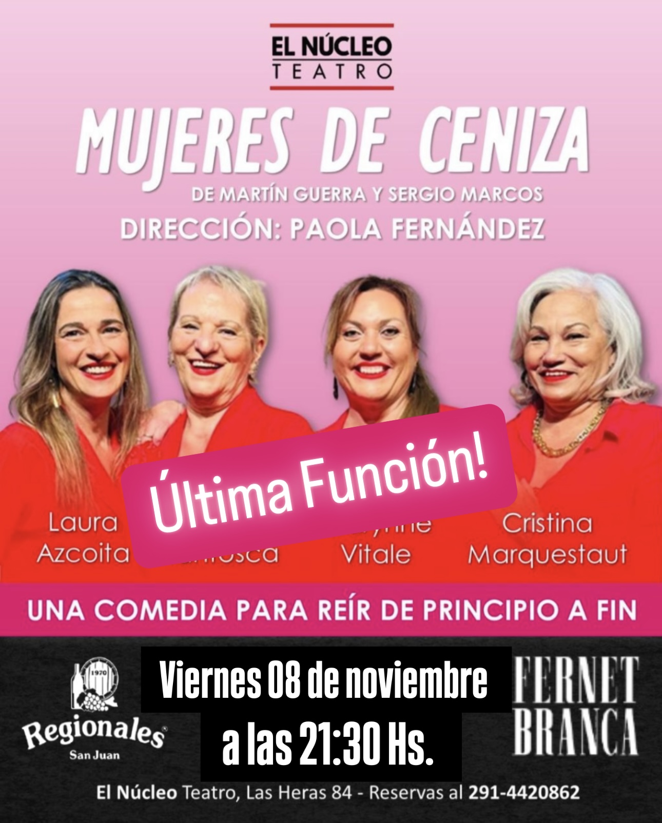 Este viernes es la última función de Mujeres de Ceniza, una comedia para reír de principio a fin. Bajo la dirección de Paola Fernández, cuenta la...
