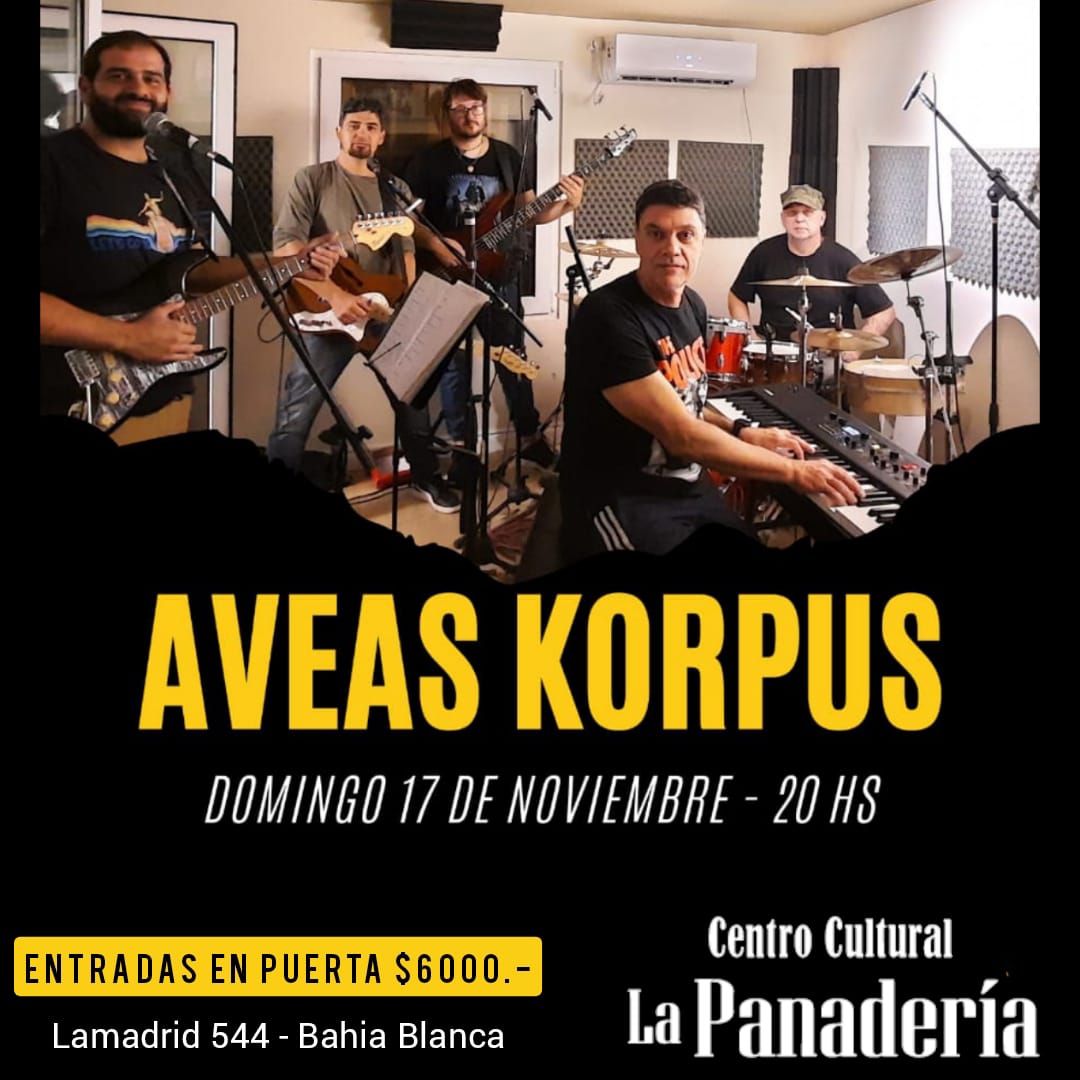 La banda riocoloradense “Aveas Korpus” se presenta este domingo 17 de noviembre a las 20 horas en La Panadería, Lamadrid 544. El repertorio tendrá canciones propias...