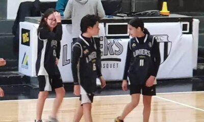 Surya, Santiago y Gaia tienen 11 años, son de Liniers y saltaron simultáneamente a la cancha.