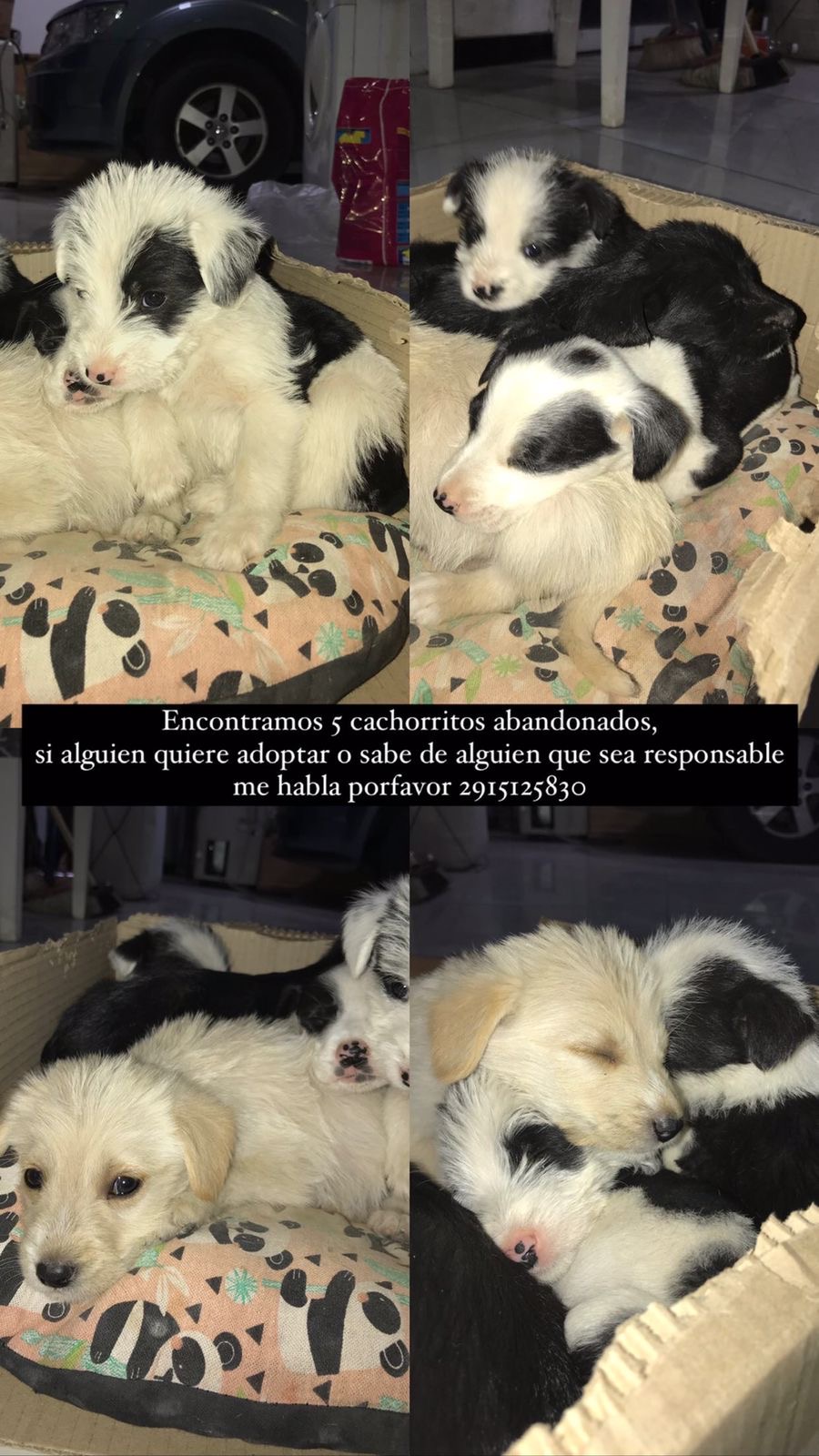 Encontramos cinco cachorritos abandonados. Si alguien quiere adoptar, o conoce a algún interesado, comunicarse al 2915125830.